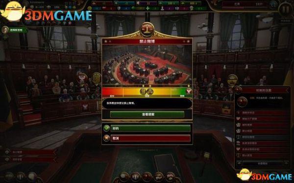 当前是城市议会界面,在这里你可对各种法案进行投票表决,或是对各政党运用各种手段措施,争取让他们同意你的意见。
