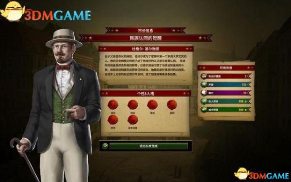 这个区域信息丰富,不但包括市长的简介、个性和人格列表,还有当前的可用资源。