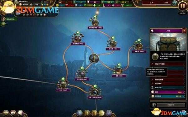 通过研究发明新技术,你可以解锁新的市政服务、基础设施、法案、经济领域,以及更多的游戏特性。每项发明旁边会显示研究它所需要的脑力值。