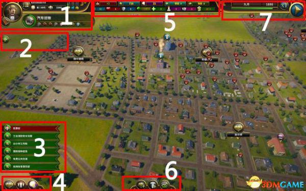 此为游戏的主界面,笔者将这些密密麻麻的图标按钮划为7个区域予以介绍。