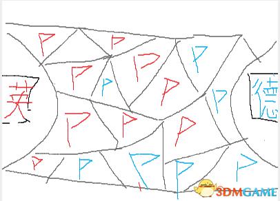 (二):地图被分割成若干块(如图),士兵可在每块区域的任意位置插上本国的旗帜,插上后即视为被本方占领,对方需先拔除后才能插上自己的旗帜。