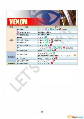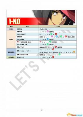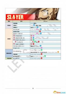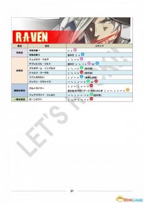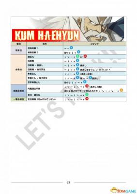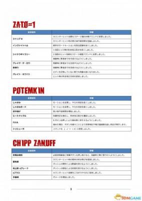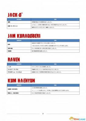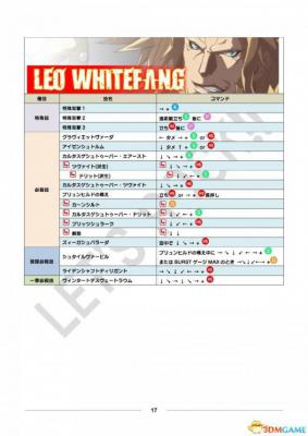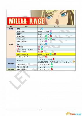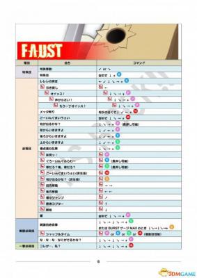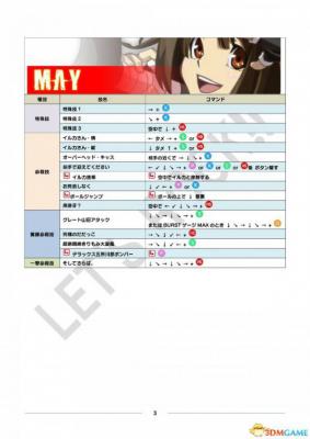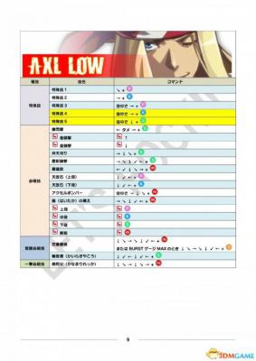 公测用出招表部分、其中黄色栏目为出招表新增或变更内容。