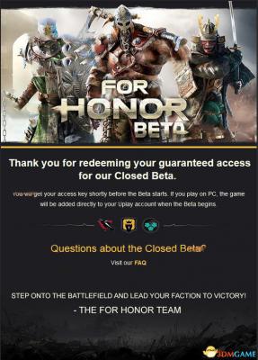 然后你就收到了一封邮件,意思就是beta之前会在你的uplay游戏库自动出现beta荣耀战魂(其他人应该是看被抽中然后邮件收key,不需要抽的公测beta就是在uplay免费游戏里添加或也直接出现)