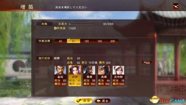 存了金钱的话在大本营使用【增筑】可以提高“交易力”。交易力变高的话,会得到【商卖】的贩卖价格会有所上升、【兵粮购入】和【兵粮贩卖】的交易量会增加等有利点。
