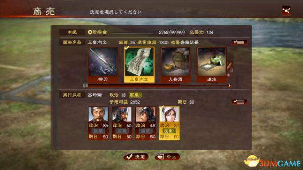 【商贩】执行后武将会进行叙述。使用采购额和贩卖额的差来发财吧!