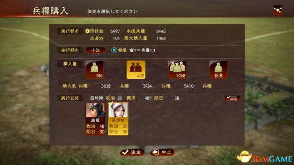 【商卖】以外,能使用兵粮的买卖提高利益。从便宜的都市【兵粮购入】、从高价都市【兵粮贩卖】,从中获得利益。