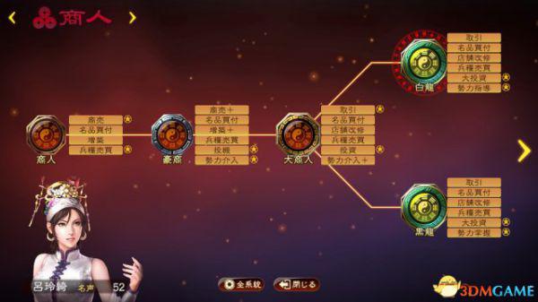 商人系统升级到大商人时,会出现白龙和黑龙的分支。白龙和黑龙的区别是,对于支援的势力是指导还是掌握。