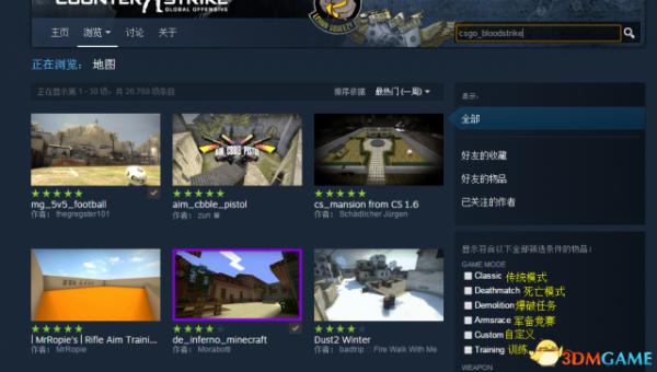 右上角可以输入地图名进行查找,比如输入aim就能搜到各种对枪图,输入de_就是炸弹图,cs_就是人质图