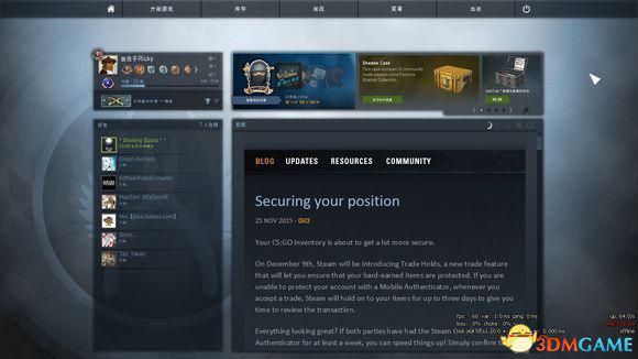 首先看看主界面,左侧是你的个人信息,显示你的徽章,经验等级,rank匹配级别,左下方是你的好友栏,你可以点击邀请他们一起匹配,或者查看他们的个人信息