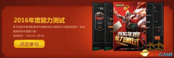 参与活动可获得新春字符徽章兑积分换区永久皮肤奖励呦!快来测测你的年度能力值!