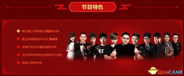 3、2017英雄联盟拜年秀将于1月23日晚8点播出,预约之后可以在掌盟收到提醒~究竟你是不是被幸运女神眷顾的天选之人呢?让我们拭目以待。