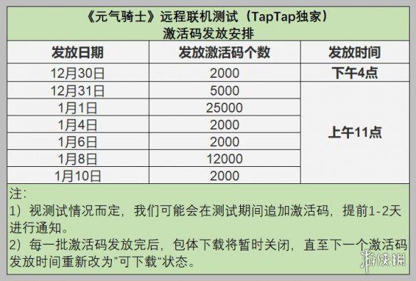 12月30日下午4点前往TapTap“元气骑士(测试服)”页面,点击“试玩”会有弹窗显示获得的激活码。在下载包体之后,也从消息列表或详情页领取激活码。每一批激活码发放完之后,包体下载将暂时关闭,直至下一个激活码发放时间重新改为“可下载”状态。