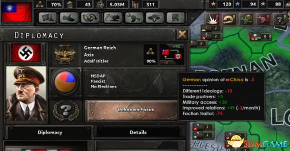 但是有些时候阵营属性会带来不好的效果,比如一个法西斯国家加入了同盟国的时候,由于被阵营属性压制,在谈判中居然不能傀儡了反倒是可以改变政体……