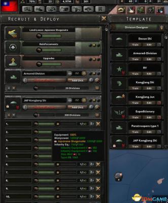 7.征兵试试?鼠标移动到部队人力栏会看到有940的中国人和8460的日本人那必须是中国人当军官日本人当炮灰了