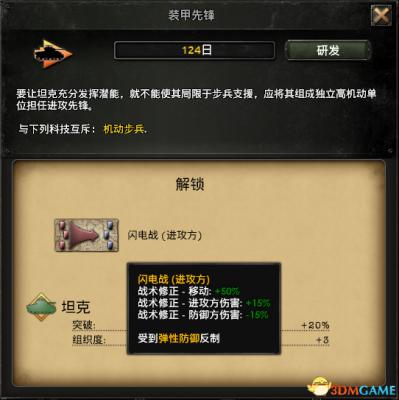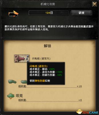 移动+50%,进攻方伤害+25%,防御方伤害-15%。看上去比闪电战战术还厉害,不过克制和反制战术不同。