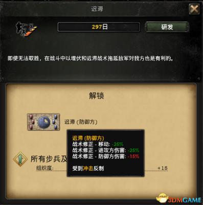 1.解锁迟滞战术。该防御战术减移速减进攻方伤害减防御方伤害,受到冲击反制。