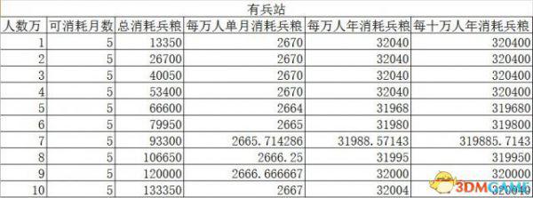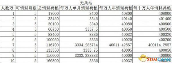在无兵站管理的重臣特技下,一万人每年消耗40800兵粮;