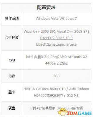 游戏运行必须安装以下插件:Visual C++ 2005 SP1 Visual C++ 2008 SP1 DirectX 9.0 and 10.0 UbisoftGameLauncher.exe