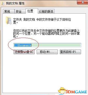 我再说一次,如果原先文档是在C盘用户名下,类似这个“C:user"的朋友,一定要按照图中所示,在桌面右键点我的文档,然后选属性,位置,将位置改为C:Documents