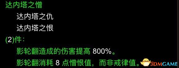 国服翻译“达内塔”,双持丹枪后翻滚不再消耗戒律,而是消耗憎恨,而对于手雷玩法,憎恨是无限的,这就完美解决不洁套的近战走位问题。
