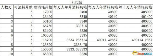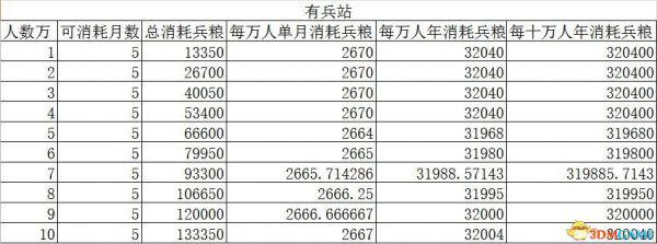 三国志13无兵站及有兵站兵粮消耗数据一览