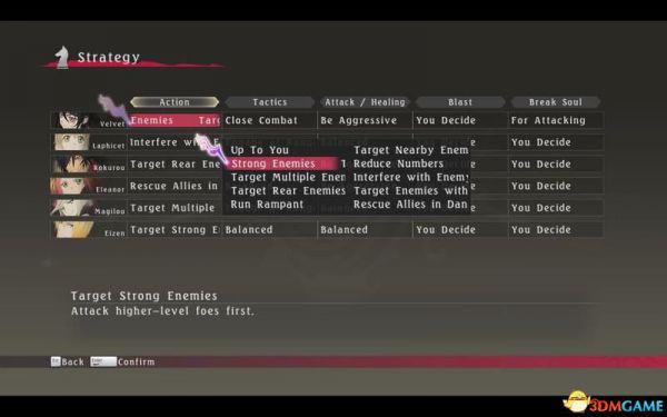 例如你可以指定某角色,以强力敌人为主目标。
