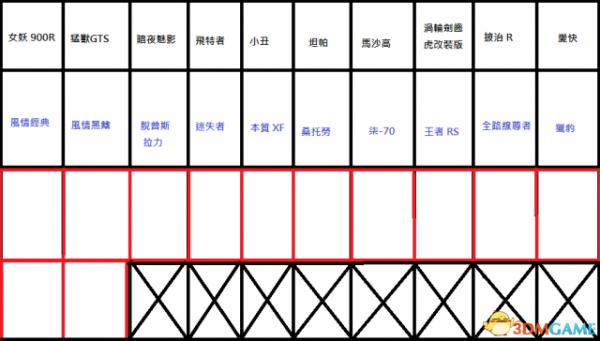 也就是说现在第一行黑色字10台奏齐第二行蓝色字10台奏齐在留8个空位接下来红色格子里不管怎么样永远都只会出现顶级车