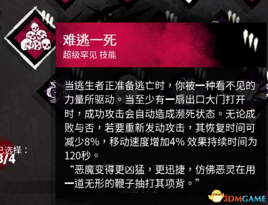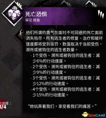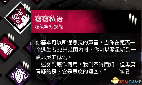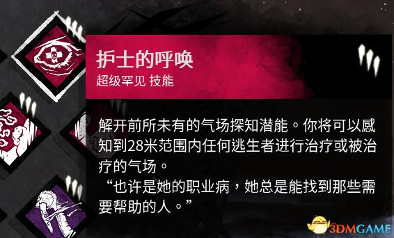 效果:当以你为直径32米的圆中有幸存者的时候这个技能会亮并且有会恶灵喘气的声音