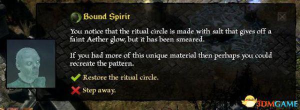 阅读留言后发现,文中提到了“死人之城”,回想到地下城我们已经去过了,那接下来只有一个地方能称为死人之城,那就是necropolis大墓园了,于是前往大墓园,在一片虚化地带发现隐藏区域,里面有个人跟你说,要开始这个仪式,你需要盐,我本来以为是石头的那个盐,结果试了没用,后来才领悟过来,原来tm的是新人刚出身,身上的那个盐包护身符啊!!!