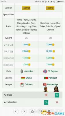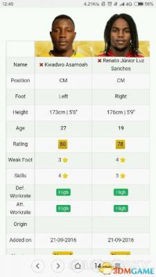 拜仁的黑桑切斯相信在17都是大家熟悉的实用球员,目前金卡小一万,黑卡十万,好,那么我们来对比一下阿萨莫阿和桑切斯