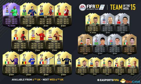 FIFA 17博格巴二黑 FIFA17UT模式第15周最佳阵容公布