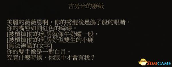 在上上期彩蛋介绍里提到有个模仿唐吉珂德的骑士,他名叫吉劳米,他到处打怪(确定不是被怪物打?)是为了向梦中情人薇薇恩证明自己,然而薇薇恩却一直不怎么理睬他,是什么原因呢?杰洛特在他的营帐外偶然捡到张情书的草稿,终于真相大白。