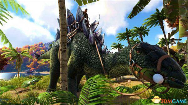 2:驯服一只三角龙吧,负重高又跑得快!脑袋拱一下一堆果子进腰包!