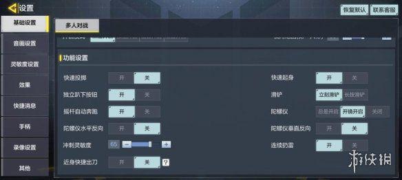 这里也单独提一下陀螺仪的设置,很多战士表示找不到陀螺仪的开关。其实在设置-基础设置-功能设置中就可以开关了,新手战士建议先用开镜开启陀螺仪适应一波,陀螺仪个人更喜欢用于压枪。部分惯用手柄战士也可以在此处设置陀螺仪垂直反向。