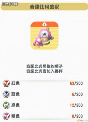 奇诺比珂的特殊能力是在“拉力赛模式”中,“金币冲冲冲”的槽蓄的更快。耀西 想要解锁耀西,需要在“建造王国”的“商店”-“特别”中购买“耀西的家”。