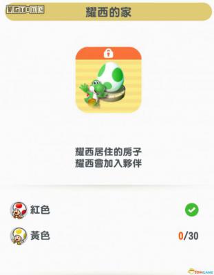 耀西的家需要红蘑菇头、黄蘑菇头各30个才能解锁。