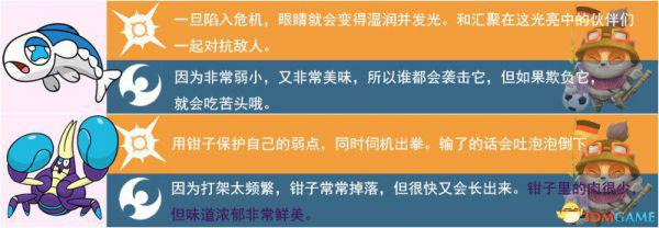 至于其他精灵虽然图鉴有对于捕猎方式或场景的描述,但是对于猎物语焉不详,在此就不多说了。