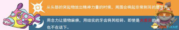 虽然没有明确说明是什么猎物,不过考虑到其原型鮟鱇鱼以及生活在水中,很明显捕食的也是鱼类精灵。
