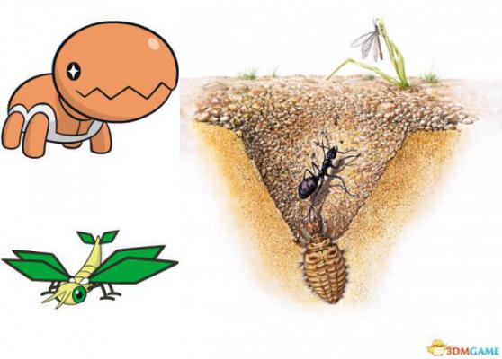 附一张蚁狮捕食蚂蚁的图,上面带翅膀的昆虫则是蚁狮的成虫蚁蛉。