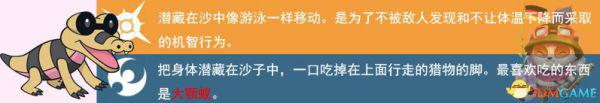 事实上沙漠里确实有鳄鱼,但是是生活在沙漠中的绿洲,所以实际上并没有真的生活在沙子里的鳄鱼,而大颚蚁的原型也不是蚂蚁,而是一种以蚂蚁为食的昆虫,俗称蚁狮。众所周知鳄鱼更多的是吃鱼,羊,斑马这些动物,不怎么吃昆虫,所以黑眼鳄爱吃大颚蚁只是PM中的设定,并没有什么现实依据。