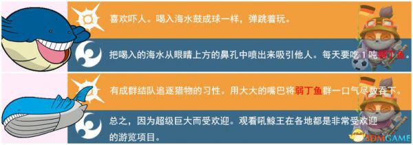 吼吼鲸的图鉴解释了为什么在阿罗拉钓到鲤鱼王的概率比弱丁鱼高,因为弱丁鱼都被吼吼鲸跟鲸鱼王吃掉了……