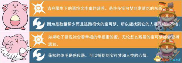 众所周知,由于孵蛋系统,Pokemon世界中所有的精灵都是卵生的(神兽与百变怪除外)所以吉利蛋的蛋与幸福蛋的蛋应该就孕育着小福蛋(小吉利蛋),吃这种蛋真的是很残忍的行为啊……