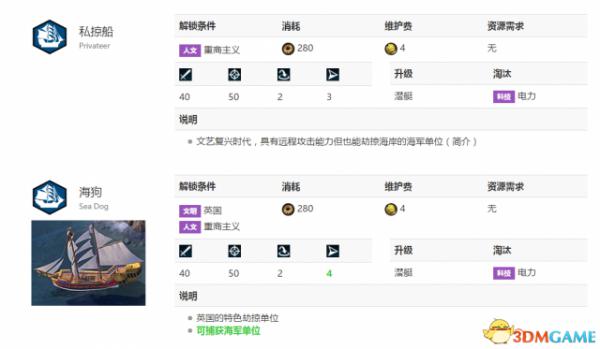 是文艺复兴时期,少数由市政树解锁的兵种【海狗】,代替相同位置【私掠船】。
