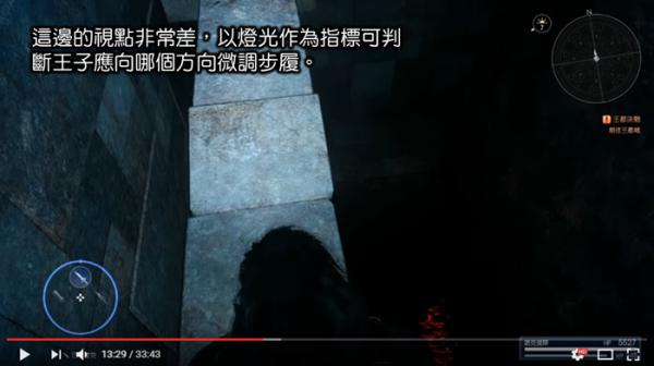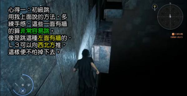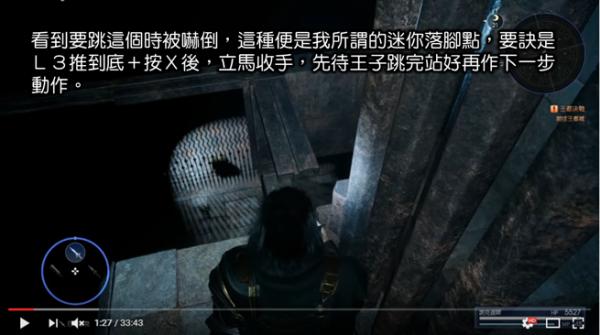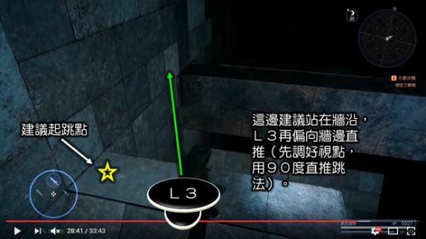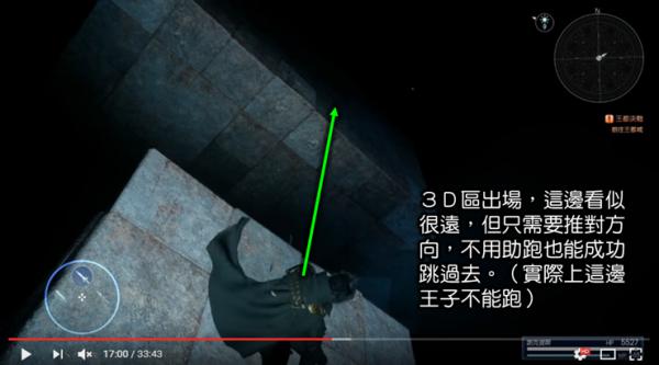 L3的方向请调校至落脚点的方向,方向必须要準确,L3推下去的时候一推到底,而且推到底之后要收手(王子跳至最抛物线的高点时便要放手,不过也不需要这么精準啦,能成功落脚就好)。