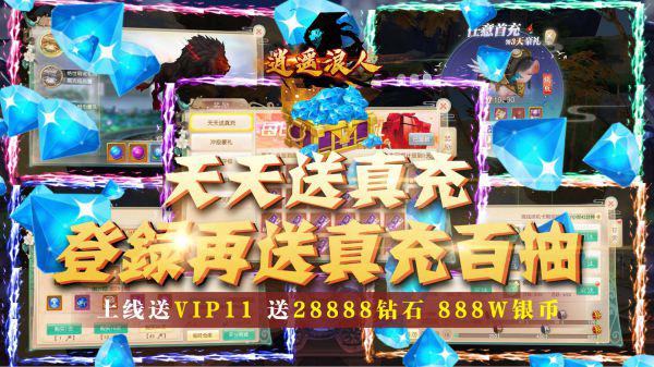 《逍遥浪人(天天送真充)》是一款仙侠3DMMOARPG手游,超强福利,每日签到送真充卡,上线送VIP11,尊贵特权免费享,更有豪华贵族礼包。巅峰对决让你竞技斗法乐趣无穷,御龙飞行,自由空战。逍遥浪人,欢迎各位上仙前来共襄盛举!
