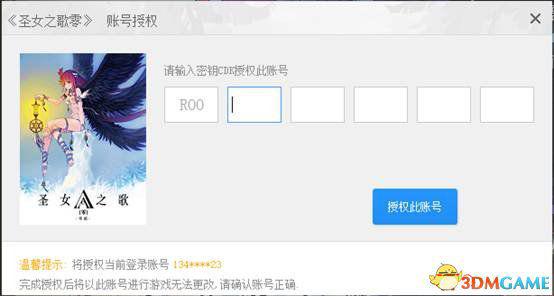 温馨提示:游戏激活成功即与当前登录账号绑定授权,请您牢记并保护好个人账号。