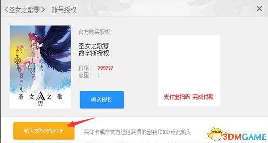 4、手动关闭弹窗,会出现一个授权激活的界面,点击界面底部“输入激活码”按键,输入激活卡中刮开的游戏激活码后,点击“授权账号”