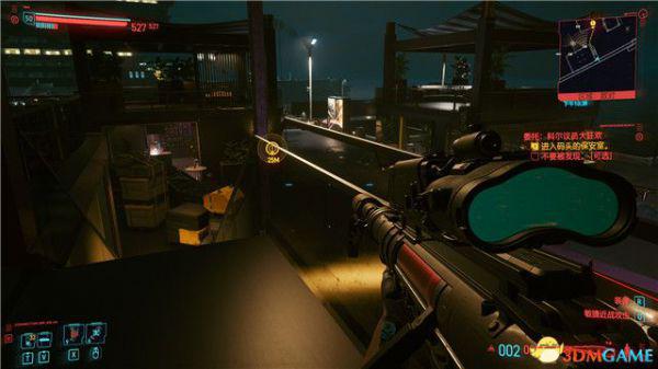 找到位于远处的赛博精神病典夫,你可以使用远程武器射杀他,难度比较低。