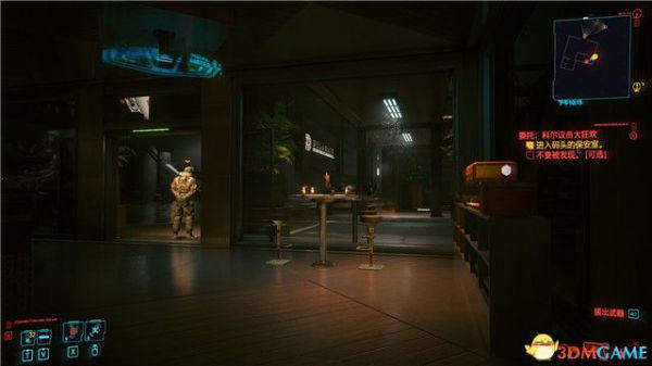 如果想要选择不交火完成这条支线,你需要首先将武器放入吧台附近的武器保管箱里。