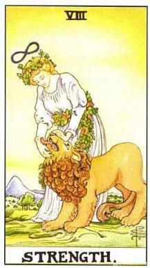 力量在塔罗牌中一般表示意志,信心,勇敢,以柔克刚等。